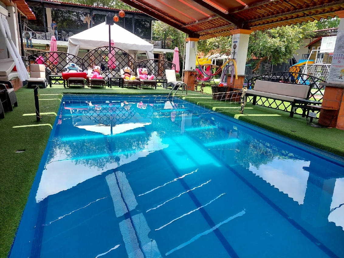 Disfrute de nuestras amenidades excepcionales, que incluyen una refrescante alberca, extensas áreas verdes, y zonas de juegos ideales para toda la familia. Nuestro compromiso es ofrecer una atención personalizada que hará de su estancia una experiencia inolvidable.